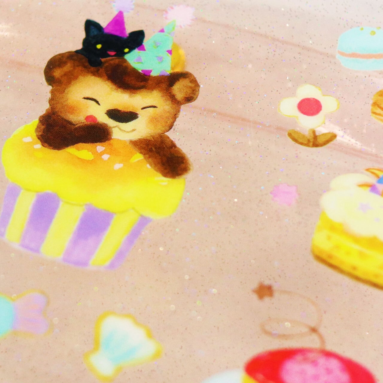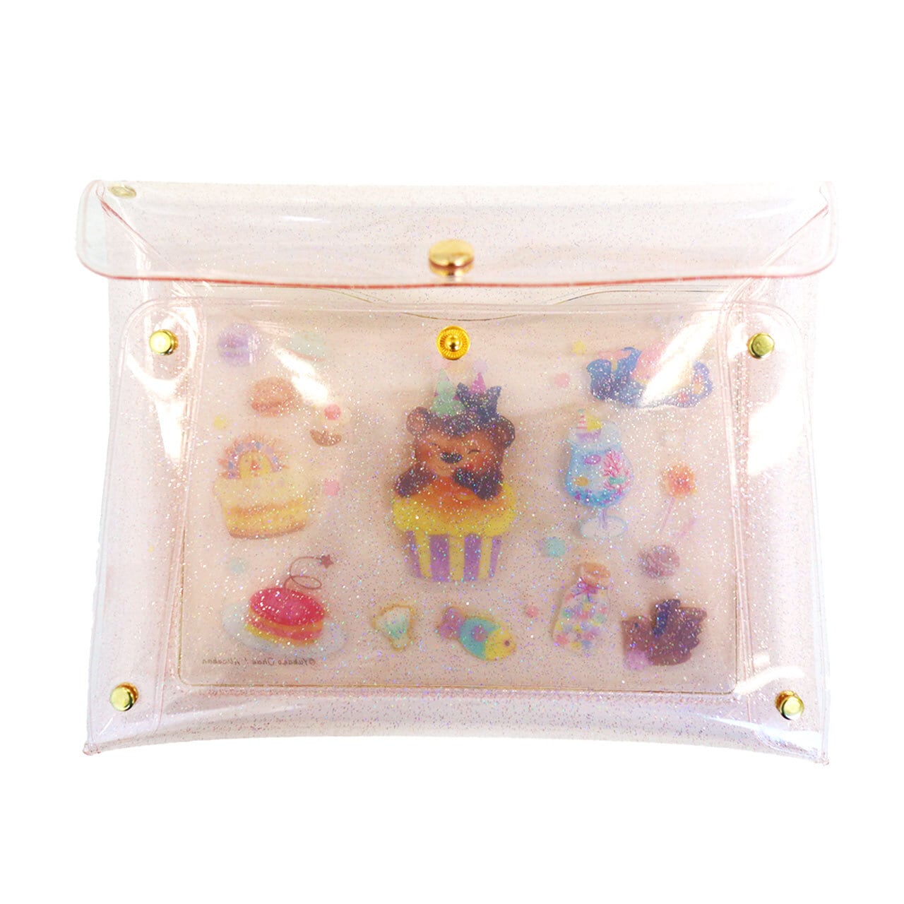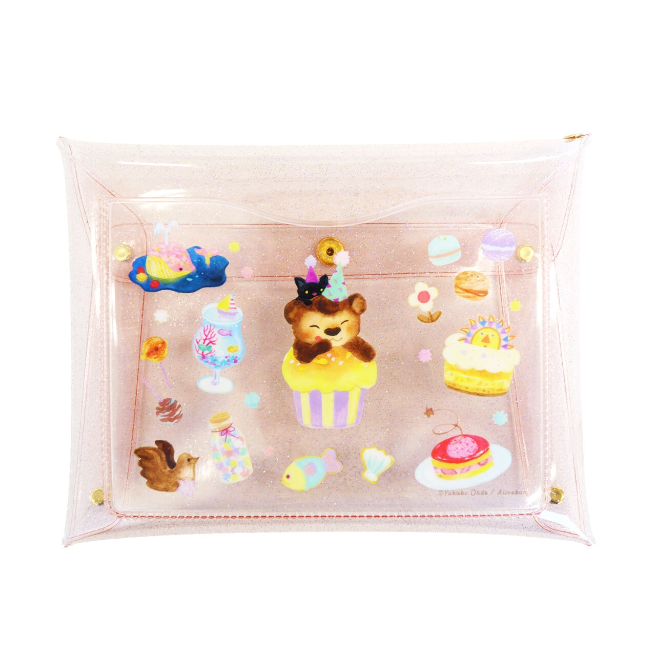 おおでゆかこさん作『いろいろおかしパーティー』の、キラキラポーチ。
