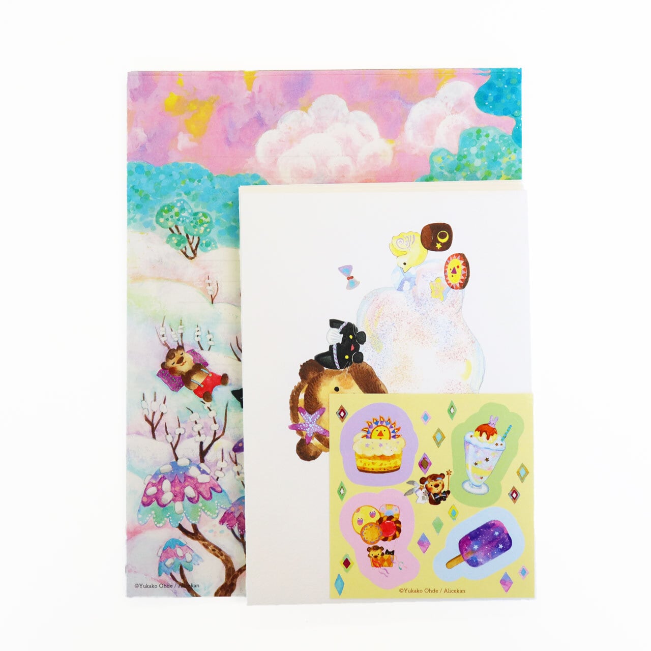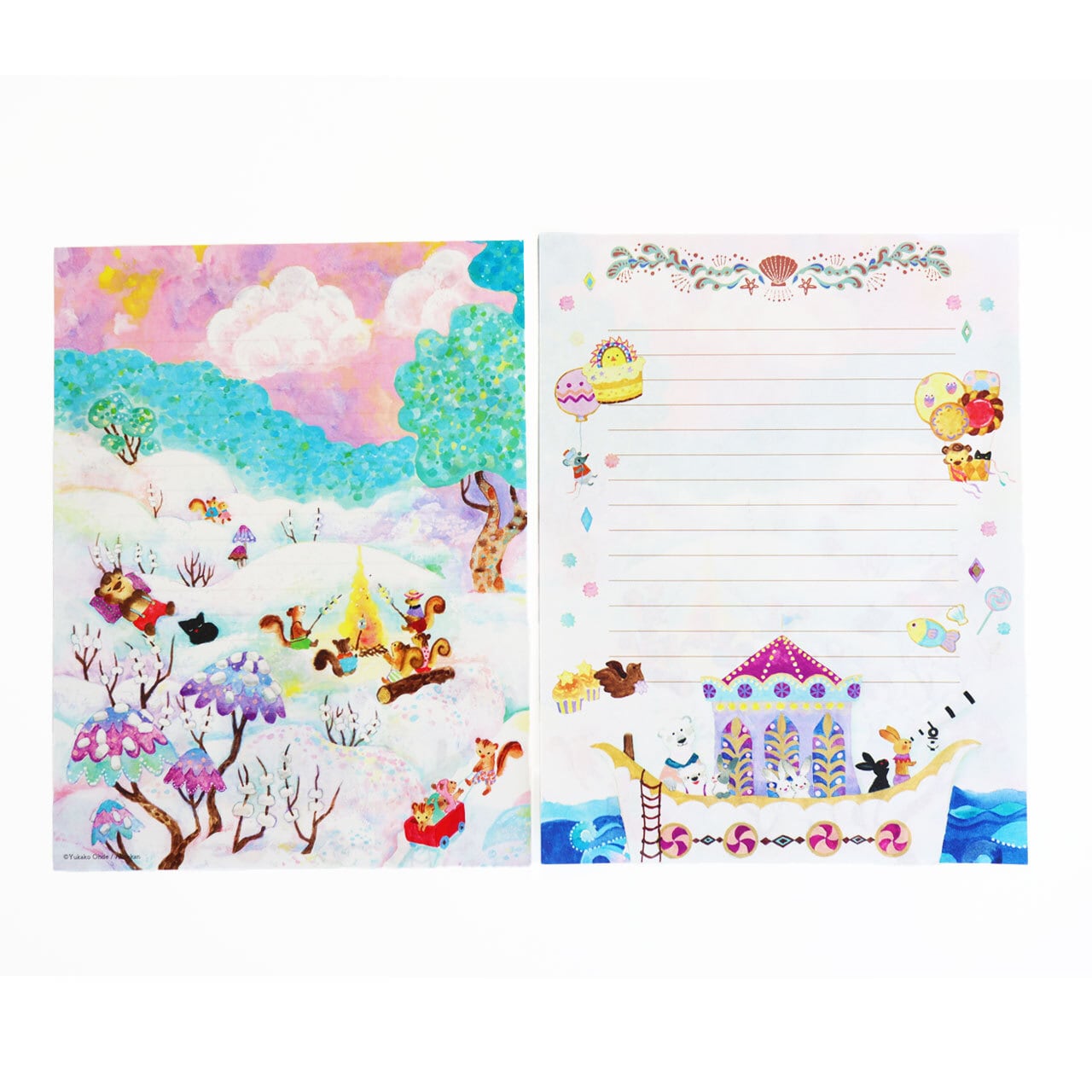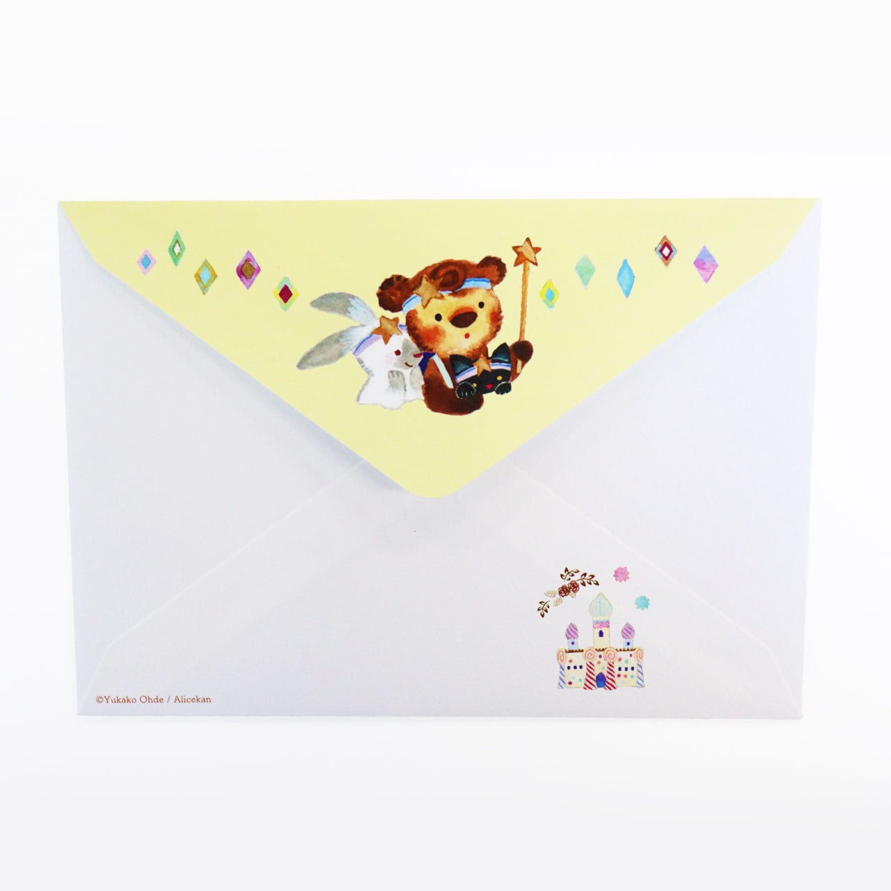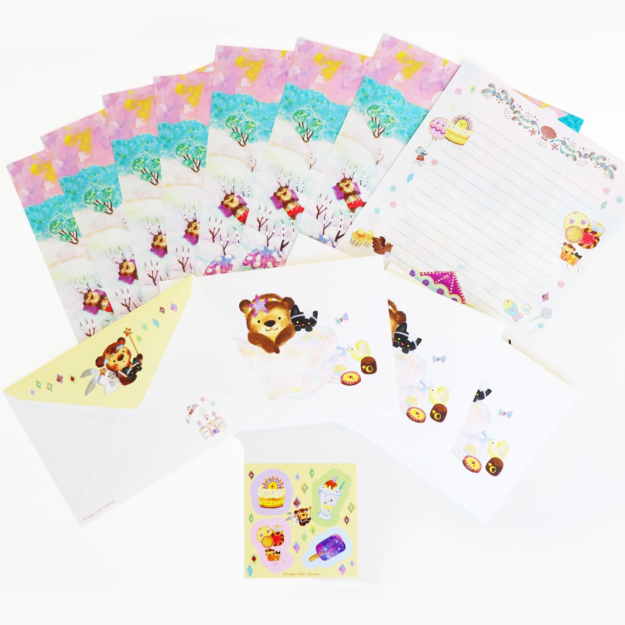 絵本のワンシーンを切り取った便箋と、ファンシーなデザインの封筒が印象的な仕上がりです。