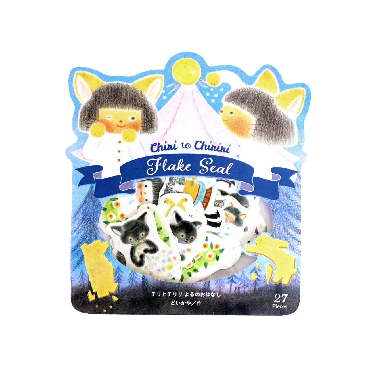 『チリとチリリ よるのおはなし』の絵本のシーンを切り抜いた、フレークシールです。
